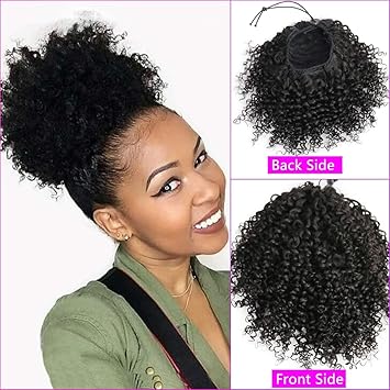 Postiche Queue de Cheval Cordon Extensions Afro Bouclé, 12 Pouces Ponytail Cheveux Naturel Kinky Humains 2-clips Cordon de Serrage Ponytail Clip en Top Fermeture #1B Naturel Noir 110g: Amazon.fr: Beauté et Parfum