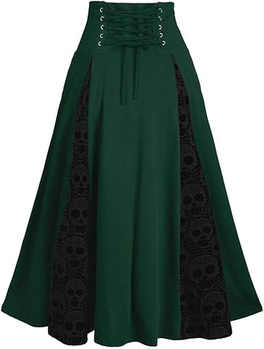 BRISEZZ Jupe Longue Taille Plus De la Dentelle Patchwork Taille Haute Jupe mi-Longue Jupe Plissée Gothique S-XXL: Amazon.fr: Vêtements et accessoires