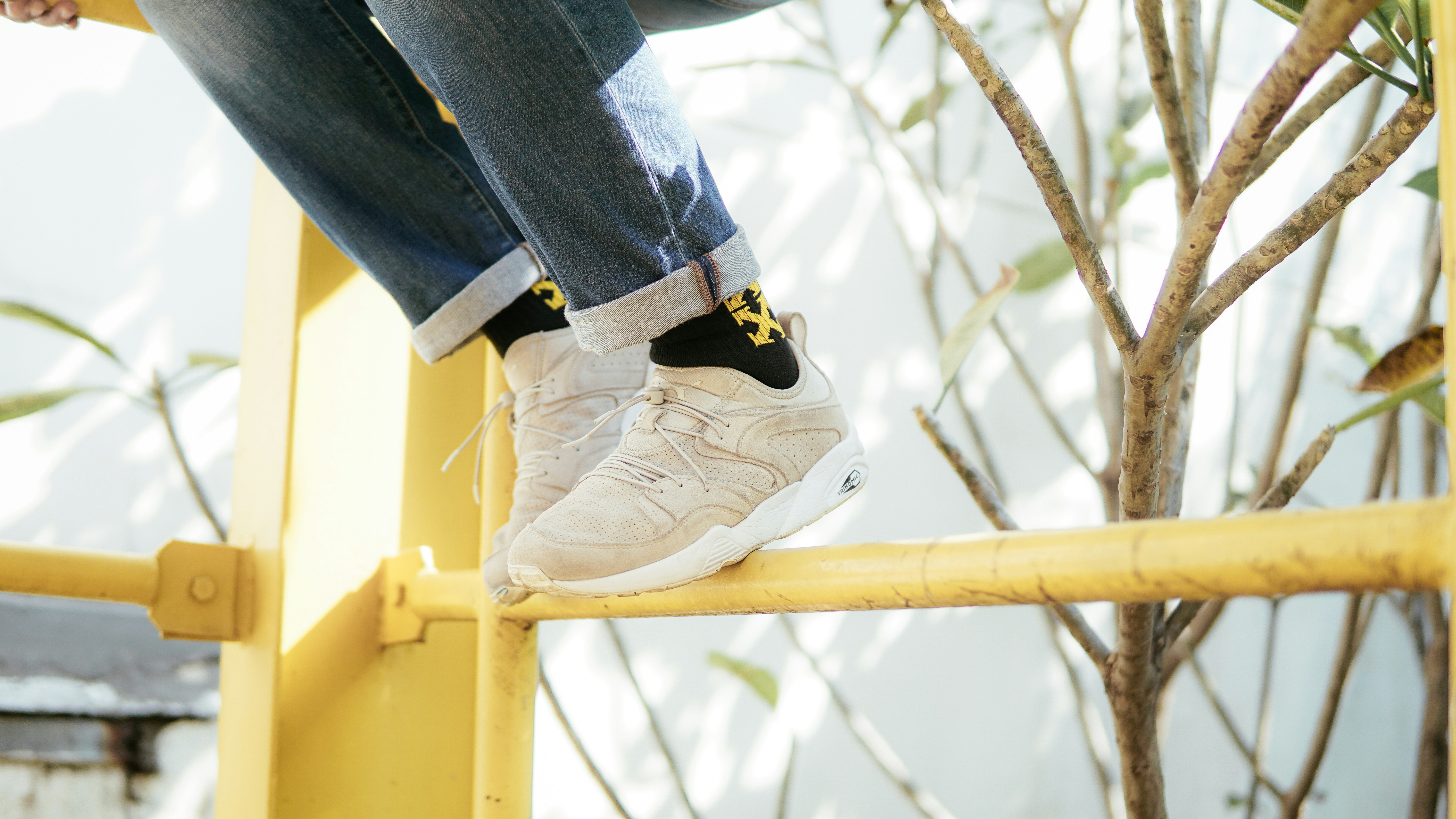 person wearing beige Puma Trinomic sneakers photo – Free Shoe Image on Unsplash