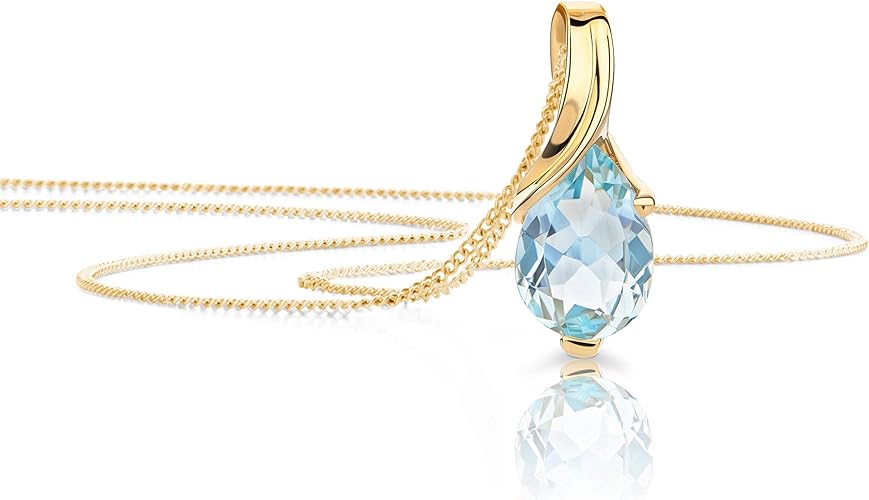 Orovi Bijoux Femmes Collier avec Pendentif Poire Pierre Précieuse Aigue- marine bleu Chaîne en Or Jaune 9 Carat / 375 Or, longueur 45 cm: Amazon.fr: Bijoux