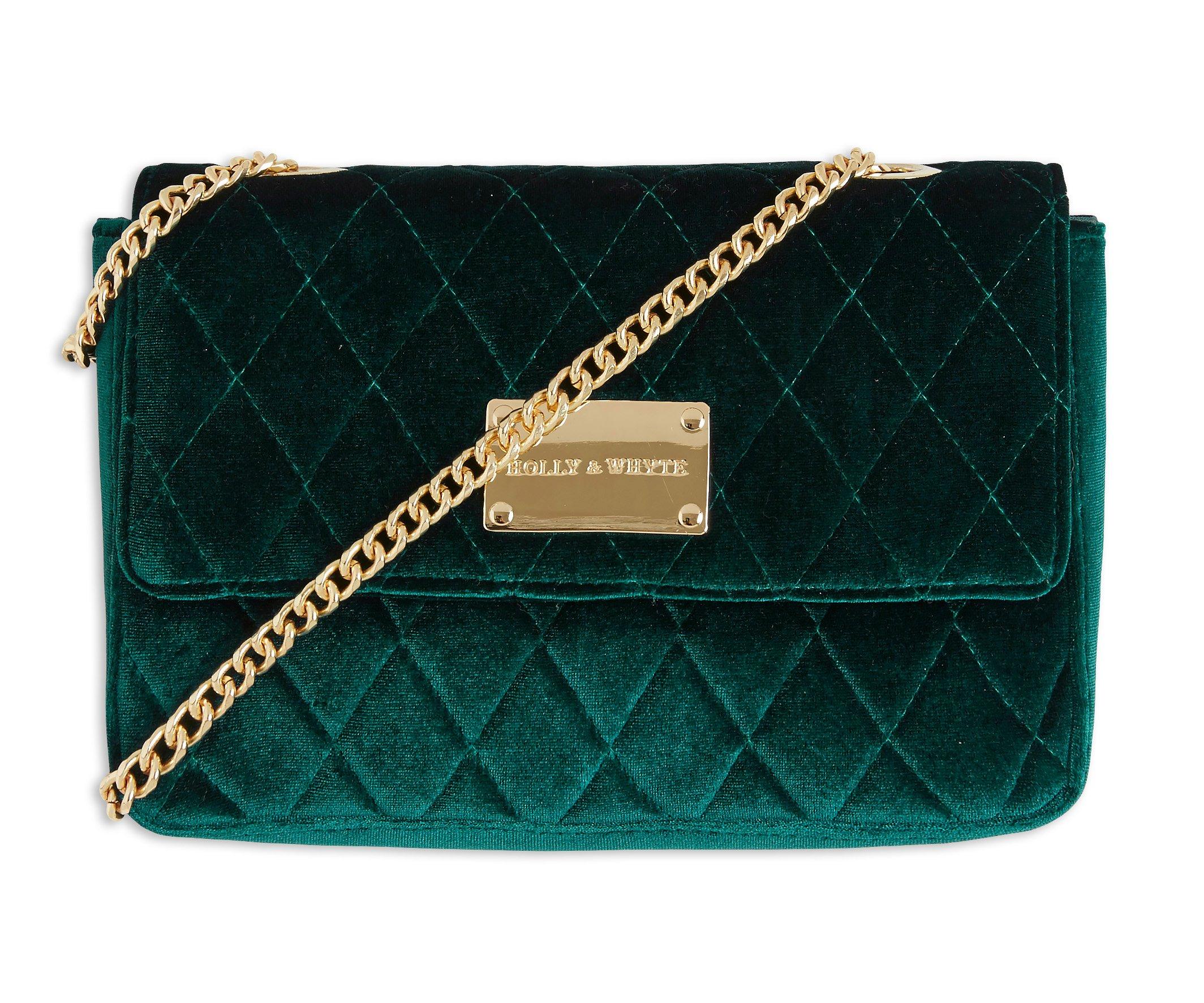 Velvet purse, Green handbag, Chain bags
