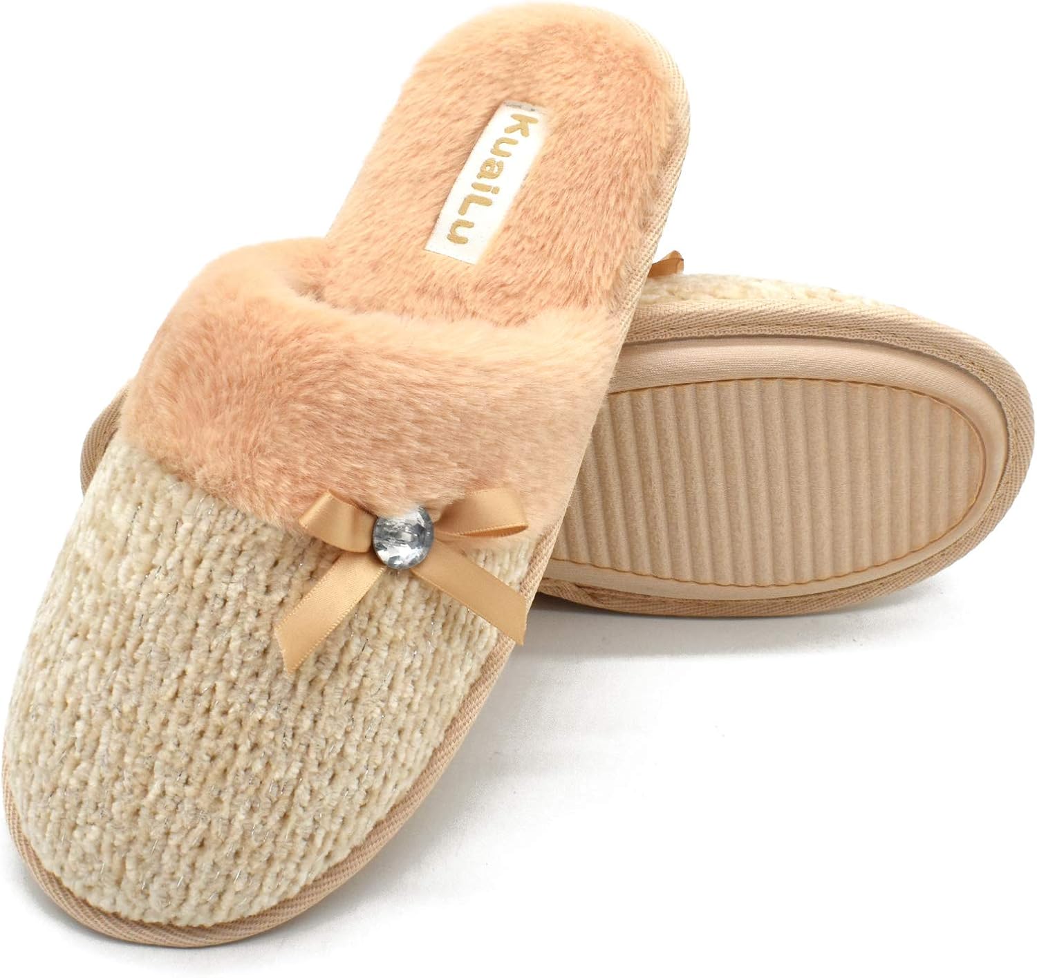 Chaussons Antidérapant Semelle Chaussons Peluche Adulte Hiver KuaiLu Chausson-Femmes Haute Densité Mémoire Mousse Chaud Chaussures Maison Chenille Tricot mit Terry Tissu Doublure Pantoufles Chaussures et Sacs wiser.com.co